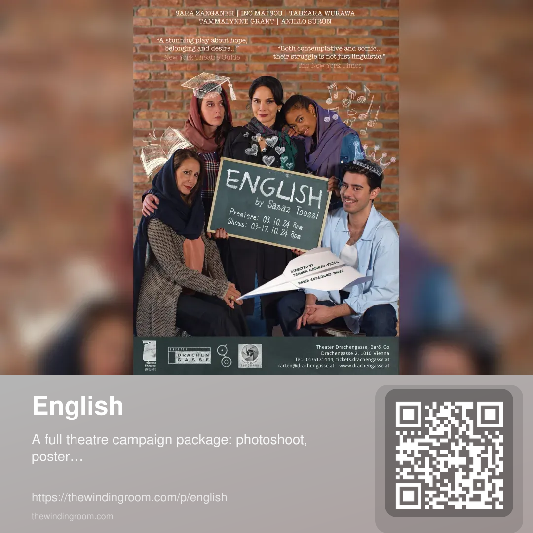 For English, I handled the poster photoshoot, produced the poster and supporting PR materials, and created additional visual sets: rehearsal photography for press, plus interview videos tailored for social media.