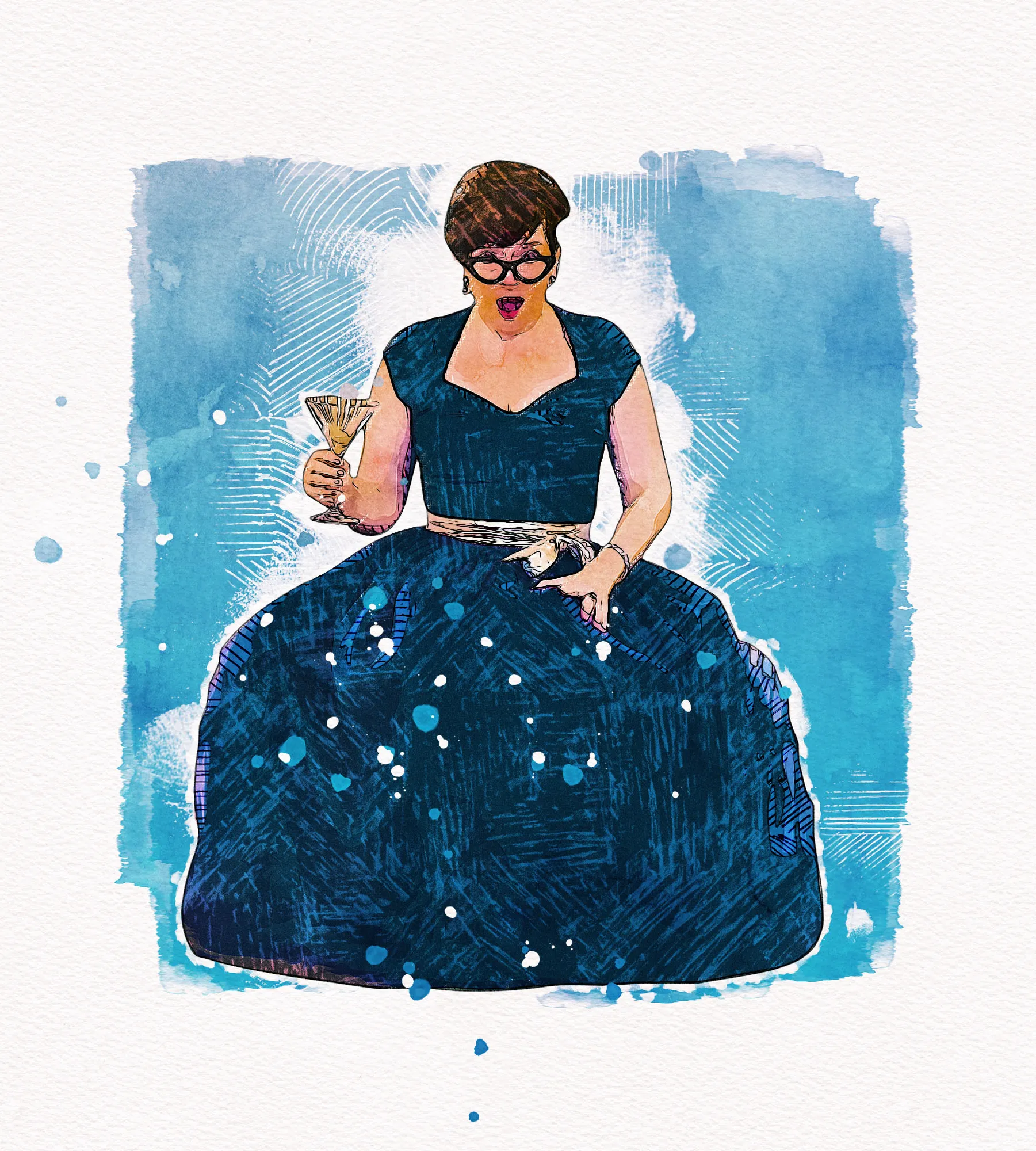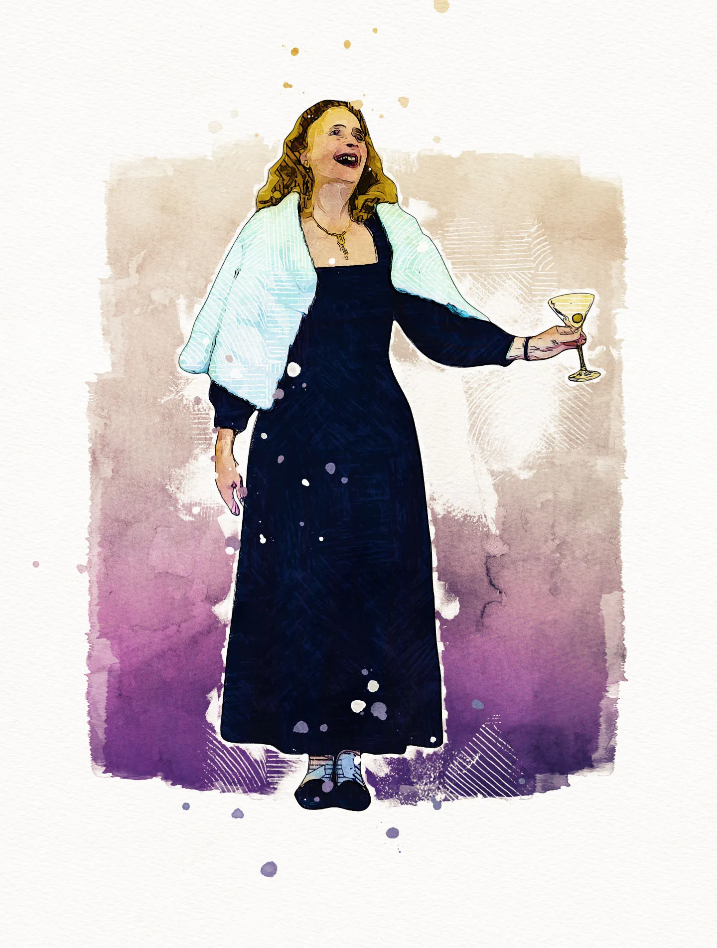 I then created watercolor-style character illustrations and arranged everything into a final composition that feels theatrical, light on its feet, and easy to read at a glance.