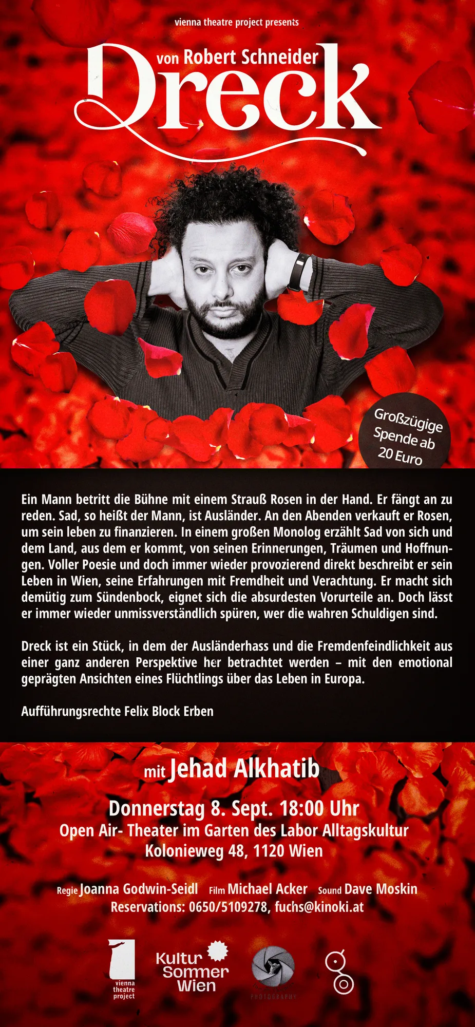 A theatre poster has to survive the real world: distance, glare, and competing announcements. For Dreck, the visual language stays reduced and direct — built for clarity first, attitude second.