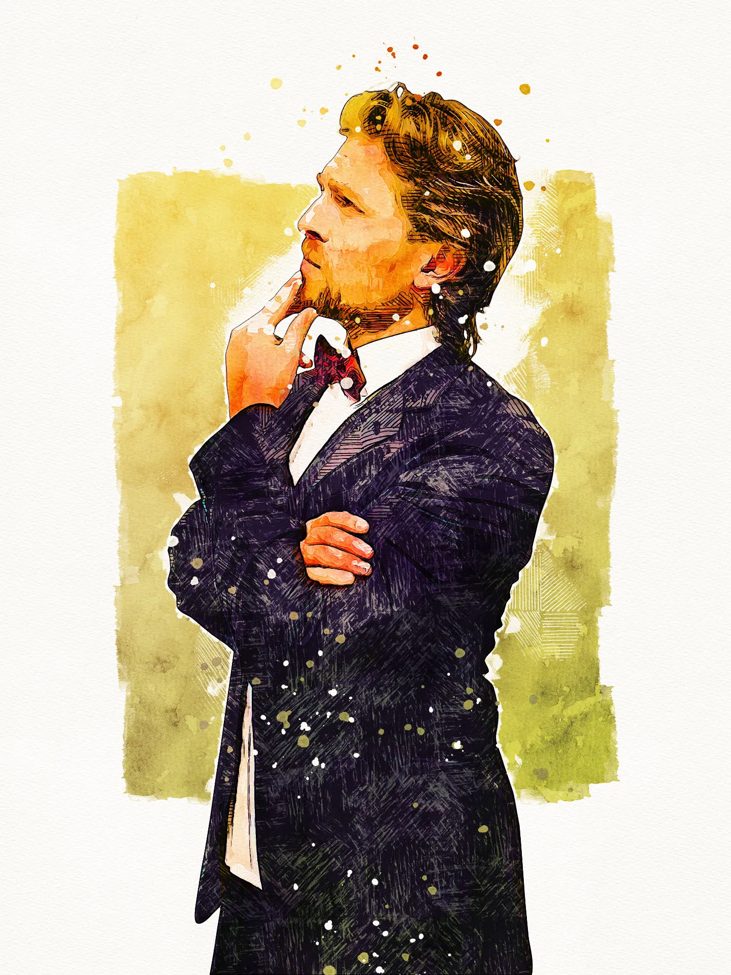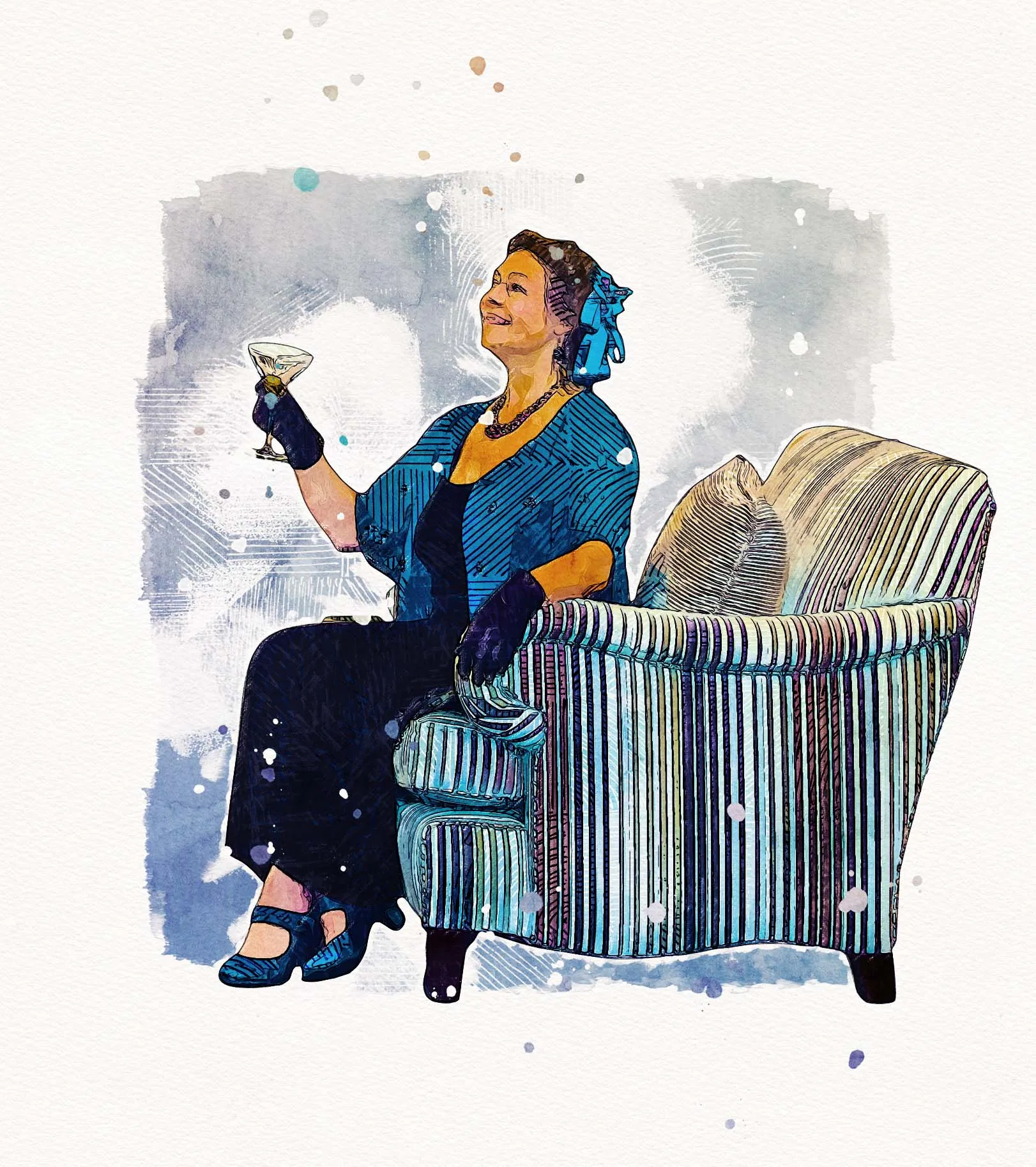 I then created watercolor-style character illustrations and arranged everything into a final composition that feels theatrical, light on its feet, and easy to read at a glance.
