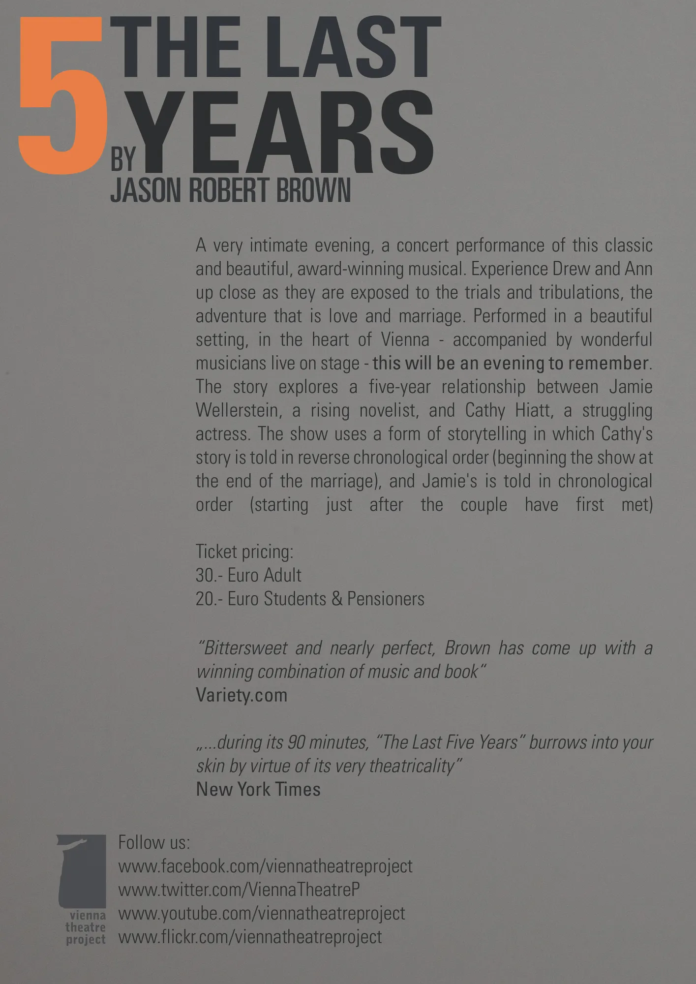 Poster + flyer visuals for Vienna Theatre Project — built for clear distance readability with a warm, intimate tone.